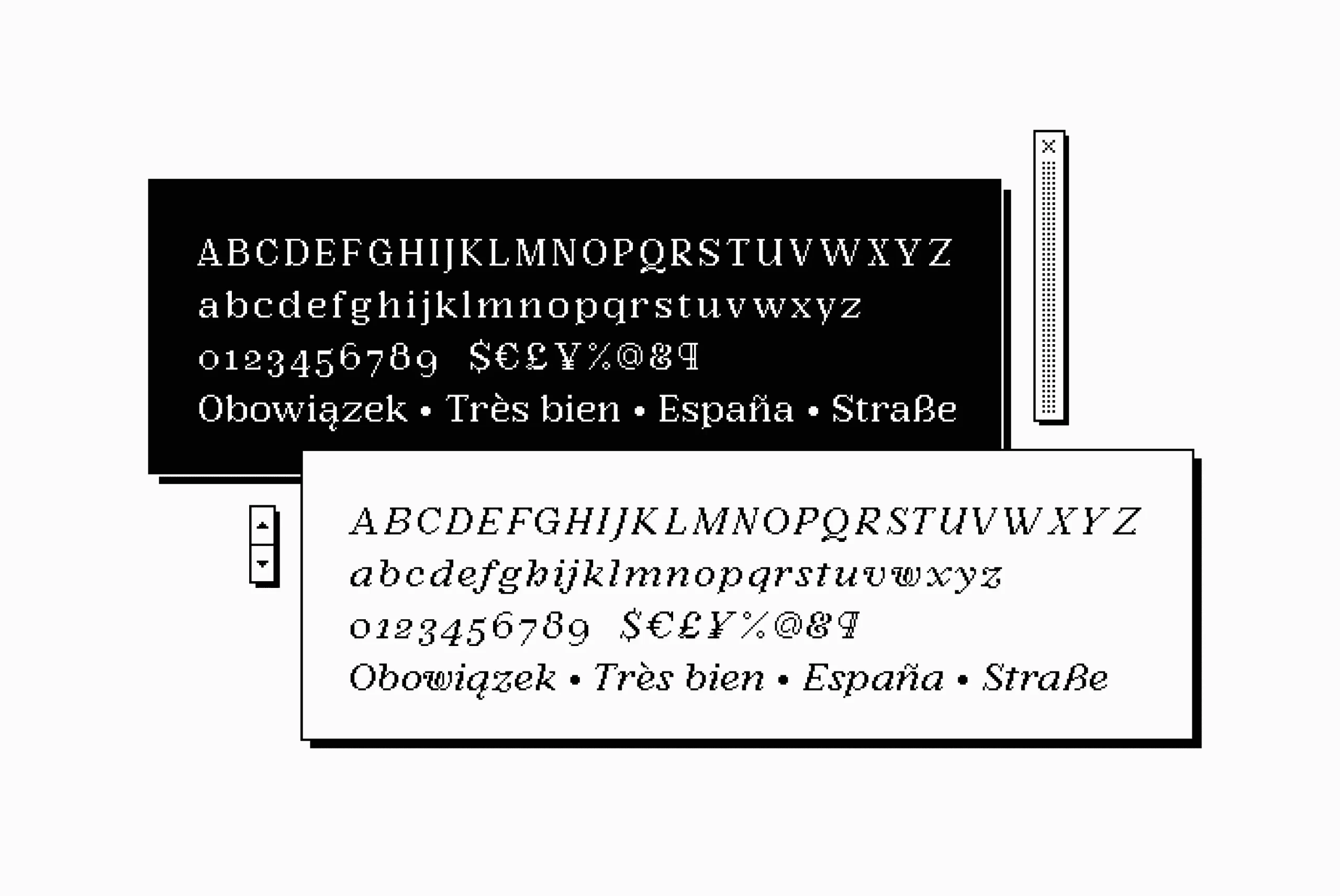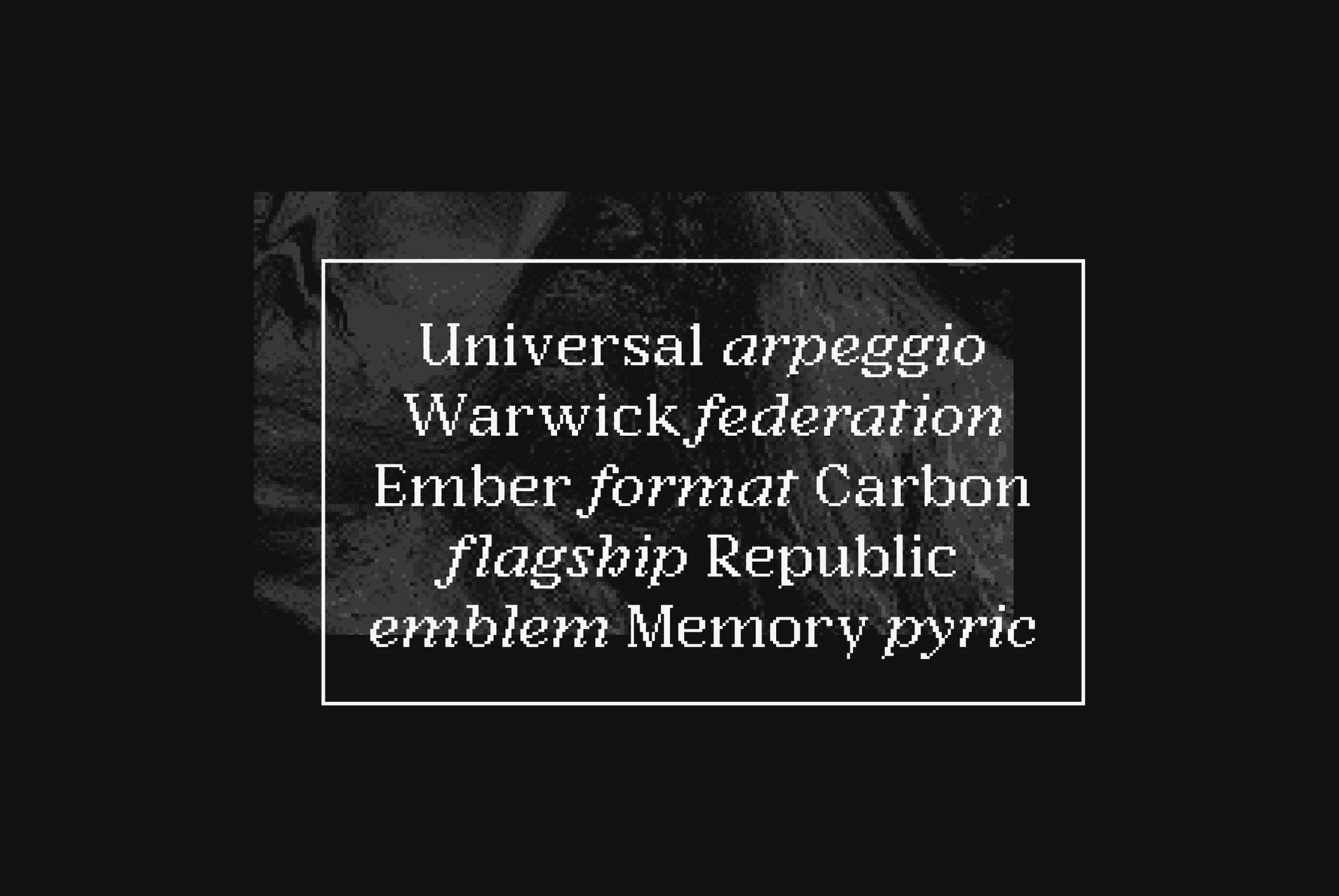 Argent Pixel CF is a playful bitmap version of the original dashing Argent typeface. With a pronounced x-height, this unexpectedly readable serif recreates the original font’s distinctive look in a style evocative of early Macintosh typography. It’s readily useful with its angled serifs and swashy italics for all kinds of typographic tasks needing a retro, low-resolution aesthetic, such as identities and brands, advertising, magazines and journals, book covers, packaging and labels, and more.