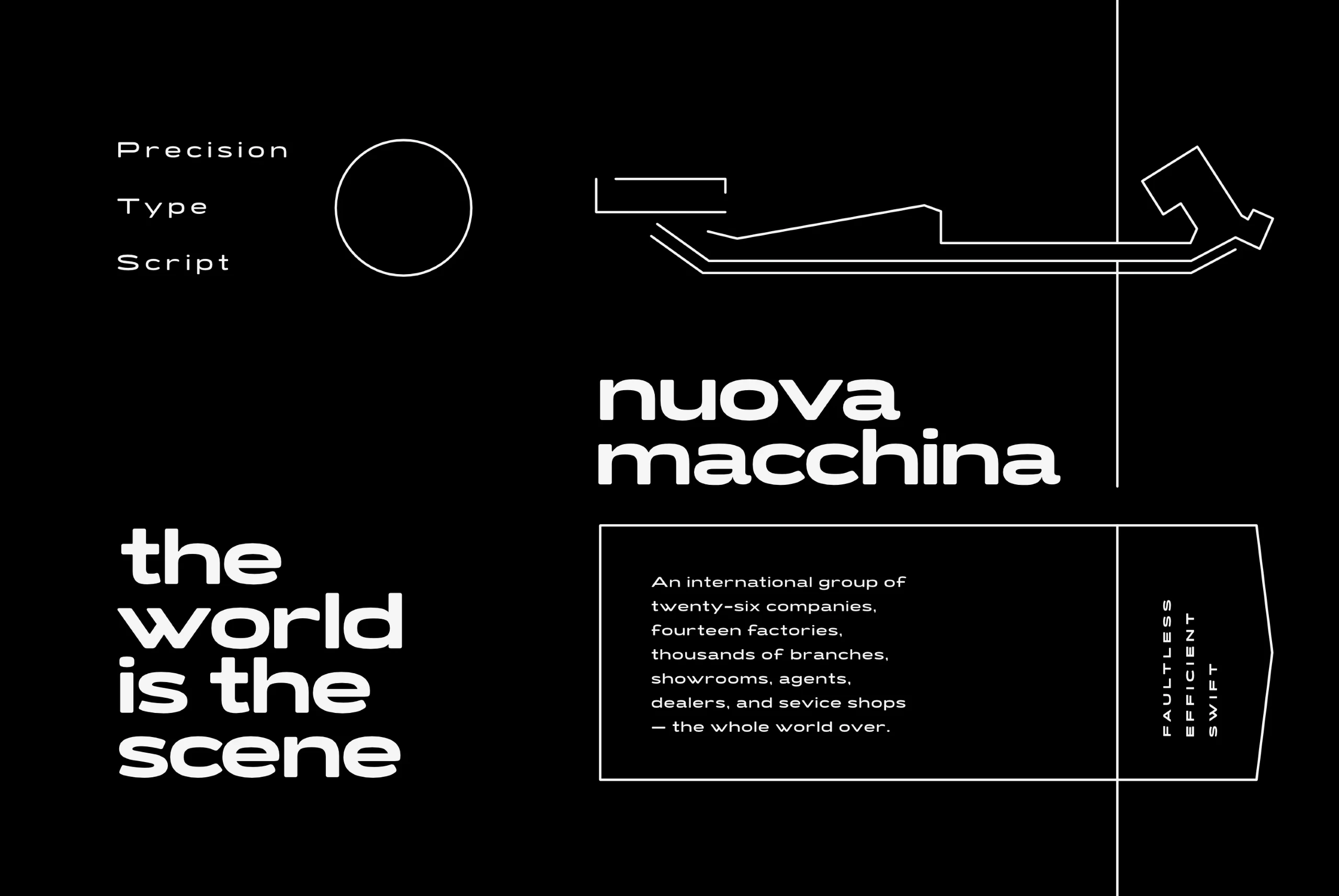 Inspired by midcentury motorsports, technology, and business, Turismo CF is designed for stunning logotypes and gripping headlines. Taking cues from both the 1960s and 1920s, Turismo combines strong rectangular shapes with sloping, elongated curves.